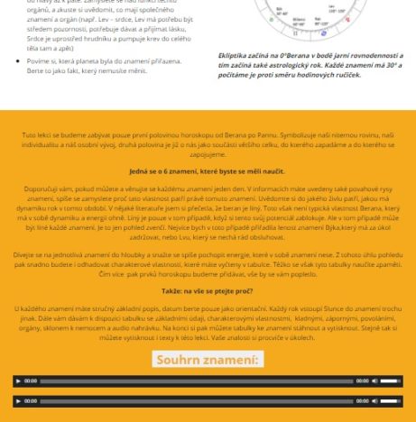 - Lekce se vám budou otevírat postupně a tak si velmi obsáhlou astrologii nadávkujete po částech. Víc si ji tak osvojíte a stane se pro vás pochopitelnou a srozumitelnou.